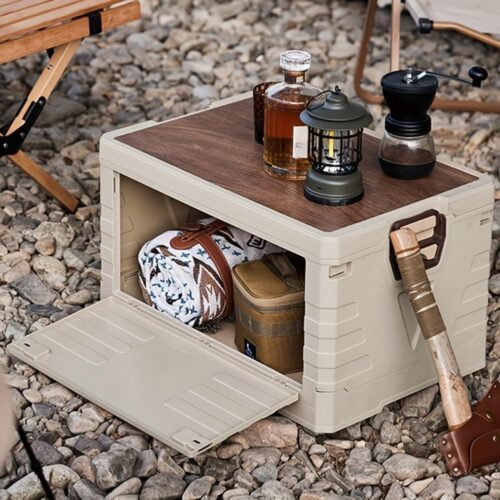 Foldable Storage Box Wooden Cover and Wheels