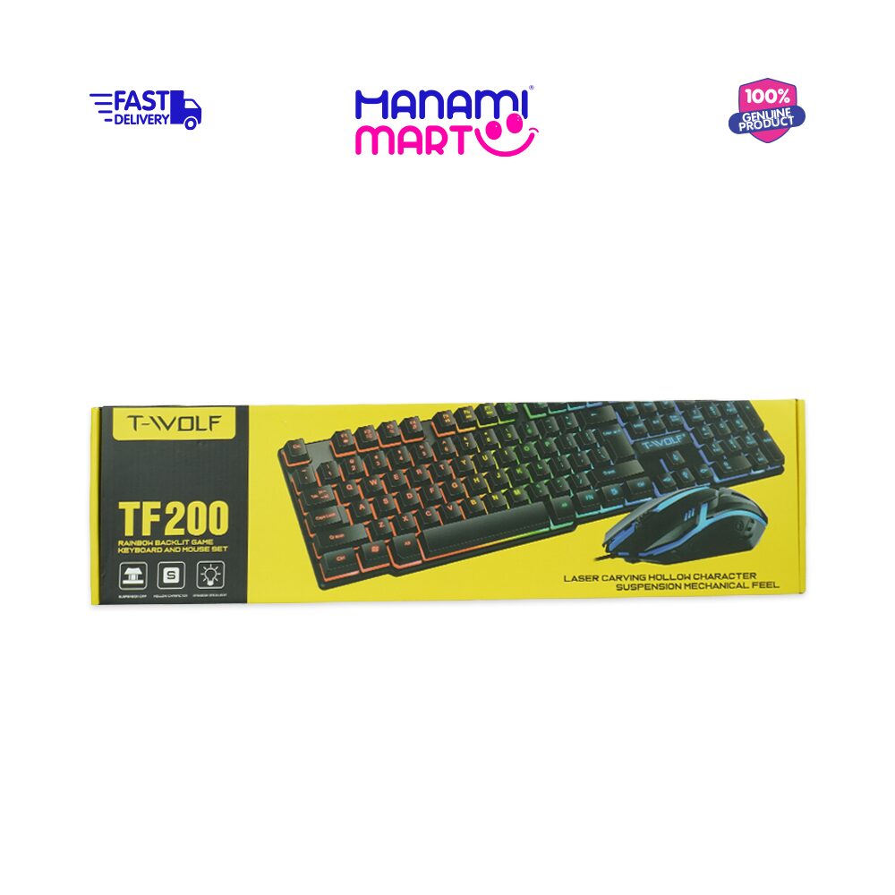T-WOLF TF200 Gaming Keyboard designed for responsive performance and enhanced gaming experience. This keyboard and mouse combo features rainbow RGB backlighting that adds a dynamic visual effect to your gaming setup.